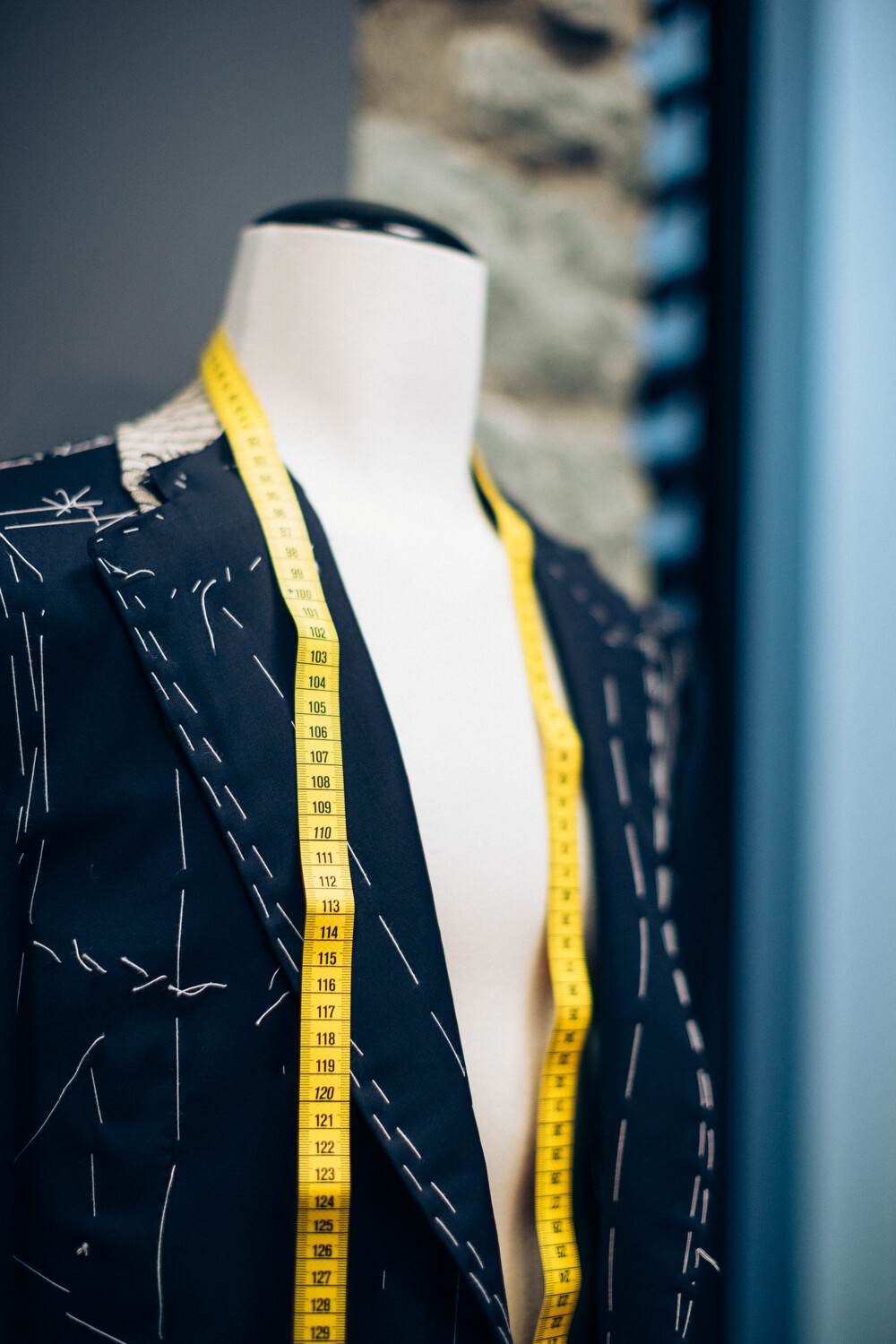 Zurück in Luzern: Lendof steht in seiner Boutique, um den Hals ein gelbes Massband gebunden. Die Schneiderpuppe vor ihm trägt eine Rohfassung eines Jacketts, durchzogen von weissen Fäden. Sein Blick fällt aufs Revers. Er nimmt das Band und hält es an den Übergang vom Kragen. «Zehn Zentimeter. Genauso muss es sein!» Das Jackett ist das Ergebnis eines ersten Termins beim Schneidermeister. Mindestens zwei Anproben werden noch folgen, bis der Kunde seinen Massanzug mit nach Hause nehmen kann. Innert zehn Wochen ist er in der Regel komplett. «Wir nehmen uns viel Zeit, um die perfekte Passform zu kreieren», sagt Lendof.