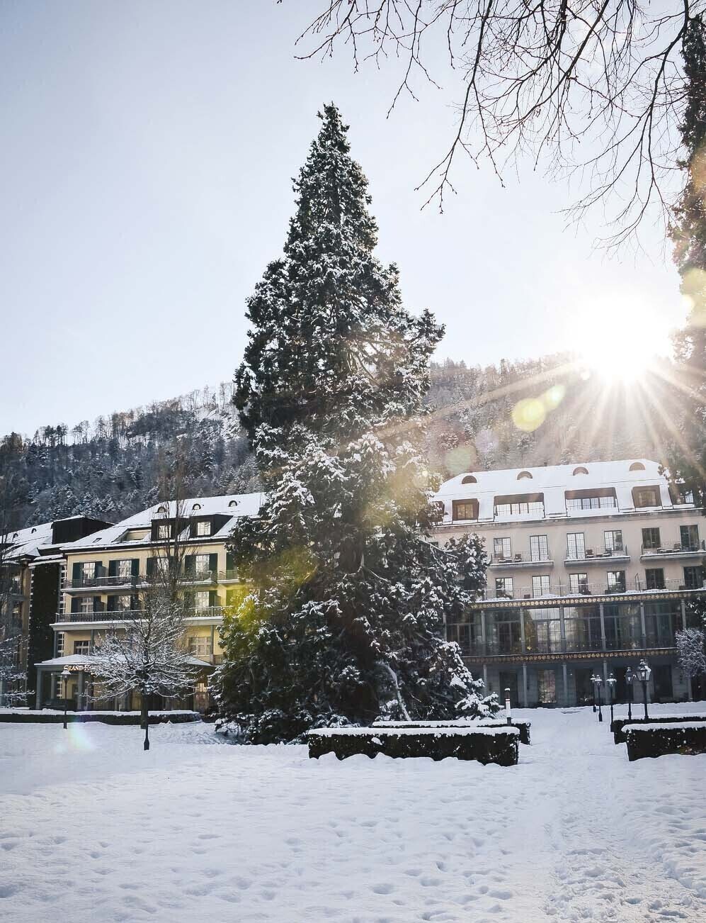 Über 39 Meter hoch und zwischen 120 und 150 Jahre alt: Die zwei Mammutbäume im Kurpark können sich sehen lassen. In der Weihnachtszeit erleuchten über 70'000 Lämpchen einen der beiden Riesen-Sequoias, wobei dieser als grösster natürlicher Weihnachtsbaum der Schweiz gehandelt wird. Schon 1955 hat Otto Glaus, der Planer der Kurparkanlage, gewusst, was gefragt ist: Wild angelegte Parks mit monumentalen Bäumen. Daher zieren nebst den älteren Mammutbäumen zentralchinesische Kaiser-Palownias, Tulpenbäume und österreichische Schwarzföhren unseren Kurpark.