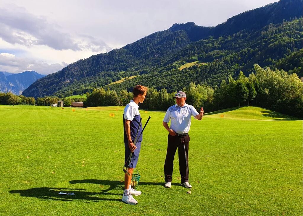 Schon am Folgetag stehe ich wieder auf dem Übungsplatz. Dieses Mal ohne Paul. Nur mit Assistenztrainer. Nieselregen. Ein Glück, habe ich mir im Golfshop auch lange Hosen besorgt. Wieso ich mich für das weisse Paar entschieden habe? Keine Ahnung. Rund 70 Bälle schicke ich ins weite Grün. Wobei ein grosser Teil nicht fliegt sondern rollt, spüre ich erstmals diese Freiheit der Natur. Diese Weite. Diese entspannte Atmosphäre. Und am Ende meine Schultern. Müde bestelle ich mir im Heidiland Golf Bistro ein Isostar. Von wegen Cüplisport.