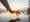 Eine Hand legt behutsam einen Stein auf einen ausbalancierten Felsenstapel an einem ruhigen See.